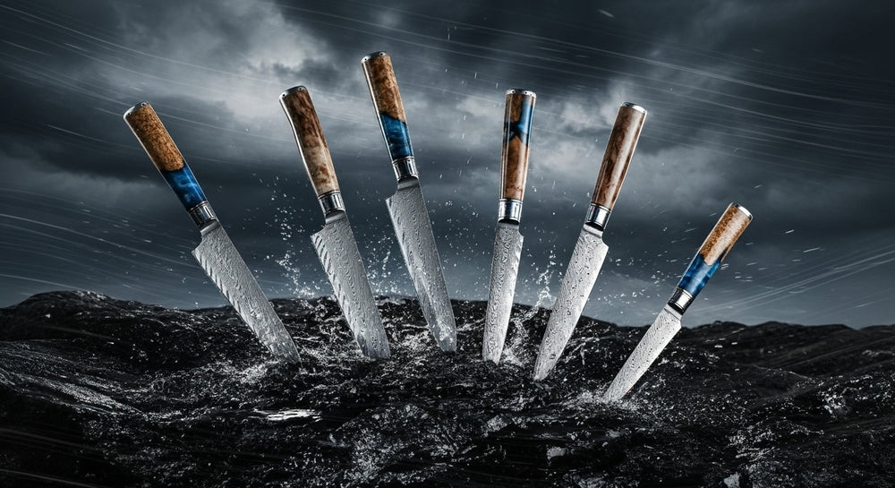 A complete transformation to any standard Knife Set. Our Damascus steel knives are made of the highest quality materials by skilled artisans in Japan.